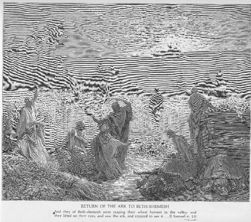 Wir bieten Ihnen eine handgefertigte Reproduktion auf Leinwand des berühmten Kunstwerks 'Die Arche ist an Beth Schemesch Zurück' von Gustave Dore, aus dem Reproduktionsmuseum.