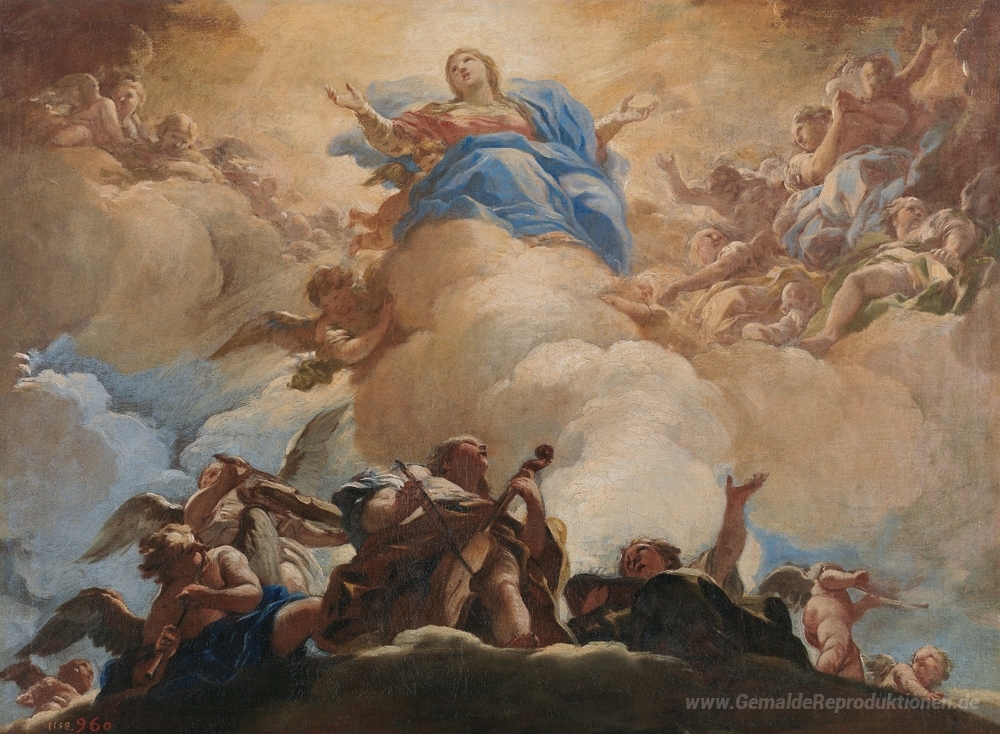 Wir bieten Ihnen eine handgefertigte Reproduktion auf Leinwand des berühmten Kunstwerks 'Die Asumption der Jungfrau' von Luca Giordano, aus dem Reproduktionsmuseum.