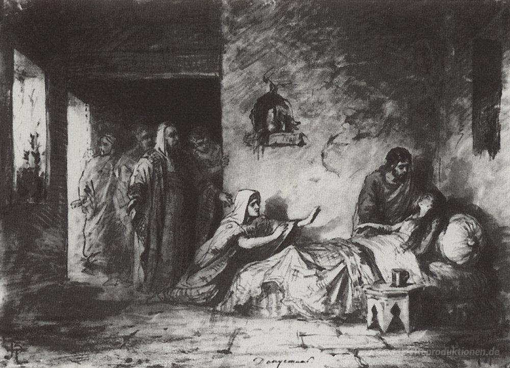 Wir bieten Ihnen eine handgefertigte Reproduktion auf Leinwand des berühmten Kunstwerks 'Die Auferstehung von Jair Tochter' von Vasily Polenov, aus dem Reproduktionsmuseum.