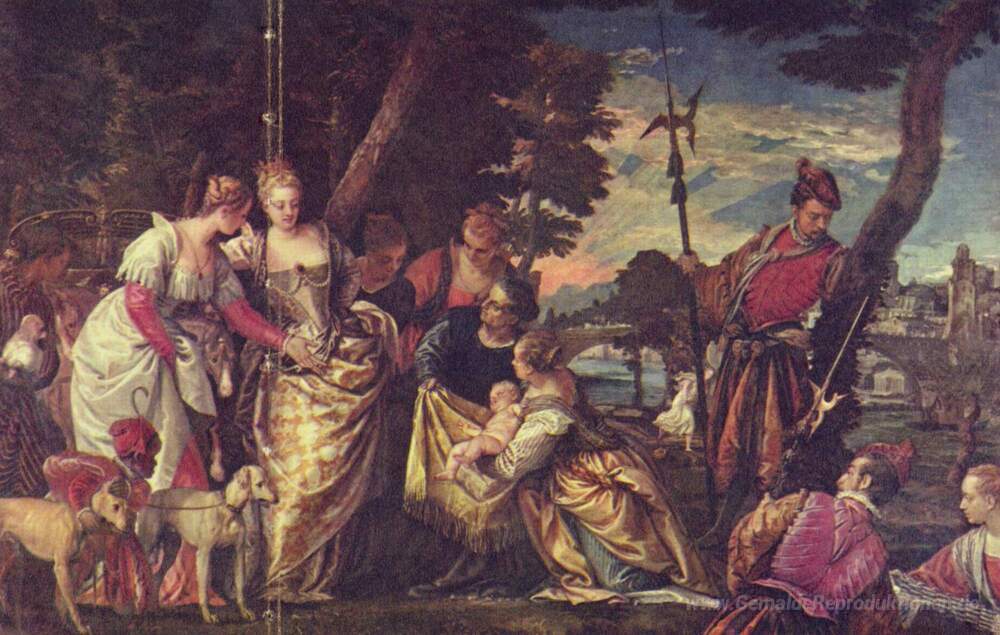 Wir bieten Ihnen eine handgefertigte Reproduktion auf Leinwand des berühmten Kunstwerks 'Die Auffindung des Mosesknaben' von Paolo Veronese, aus dem Reproduktionsmuseum.