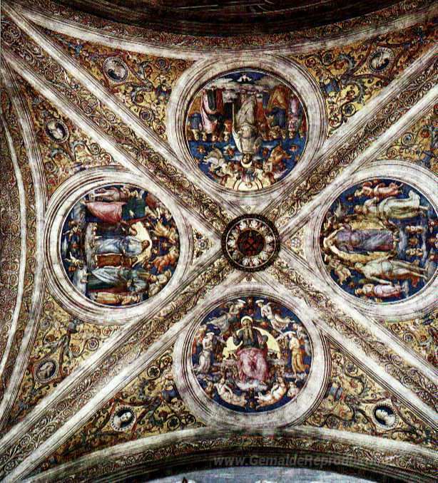 Wir bieten Ihnen eine handgefertigte Reproduktion auf Leinwand des berühmten Kunstwerks 'Die Decke mit vier Medaillons' von Pietro Perugino, aus dem Reproduktionsmuseum.