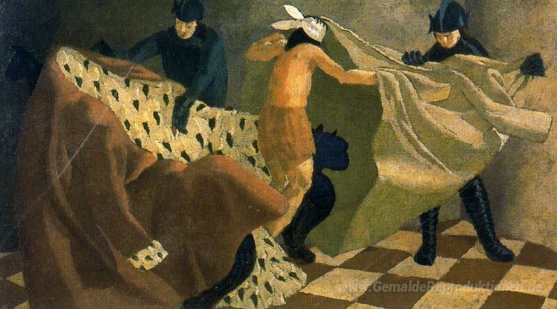 Wir bieten Ihnen eine handgefertigte Reproduktion auf Leinwand des berühmten Kunstwerks 'Die Entkleidung Christi' von Stanley Spencer, aus dem Reproduktionsmuseum.