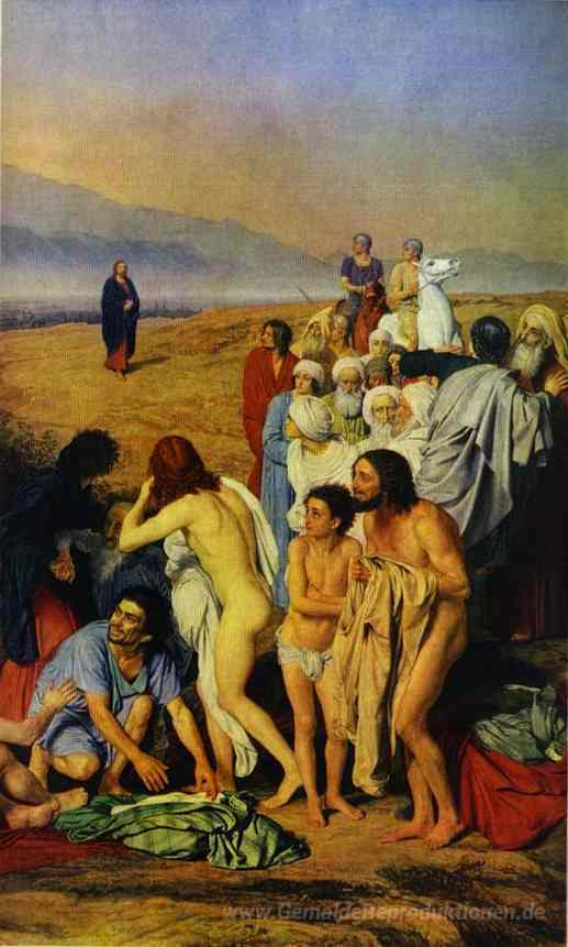Wir bieten Ihnen eine handgefertigte Reproduktion auf Leinwand des berühmten Kunstwerks 'Die Erscheinung Christi zu den Menschen (Detail)' von Alexander Ivanov, aus dem Reproduktionsmuseum.