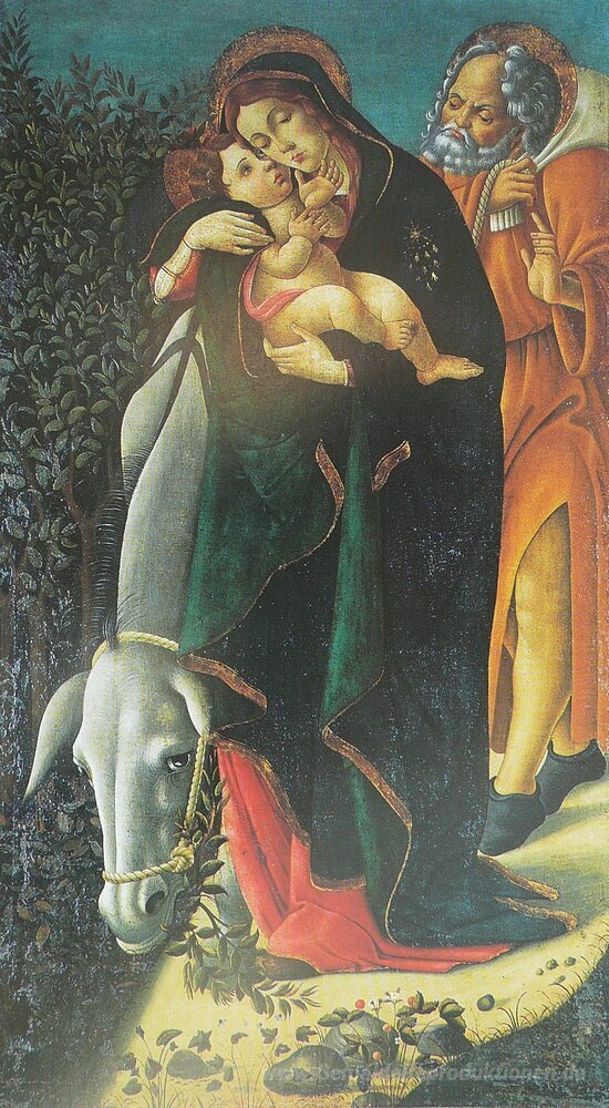 Wir bieten Ihnen eine handgefertigte Reproduktion auf Leinwand des berühmten Kunstwerks 'Die Flucht nach Ägypten' von Sandro Botticelli, aus dem Reproduktionsmuseum.