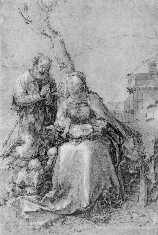 Wir bieten Ihnen eine handgefertigte Reproduktion auf Leinwand des berühmten Kunstwerks 'Die Heilige Familie mit Engeln unter Bäumen' von Albrecht Durer, aus dem Reproduktionsmuseum.