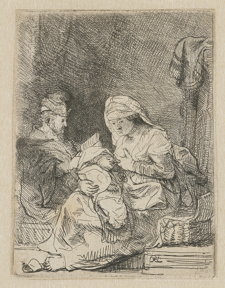 Wir bieten Ihnen eine handgefertigte Reproduktion auf Leinwand des berühmten Kunstwerks 'Die heilige Familie' von Rembrandt, aus dem Reproduktionsmuseum.