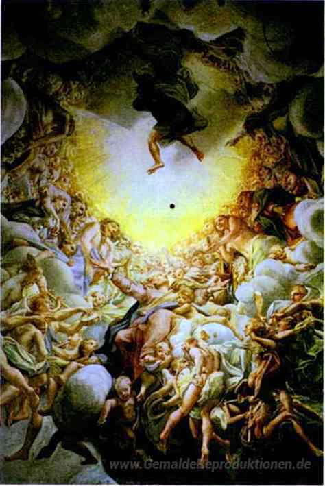 Wir bieten Ihnen eine handgefertigte Reproduktion auf Leinwand des berühmten Kunstwerks 'Die Himmelfahrt der Jungfrau (Detail)' von Correggio, aus dem Reproduktionsmuseum.