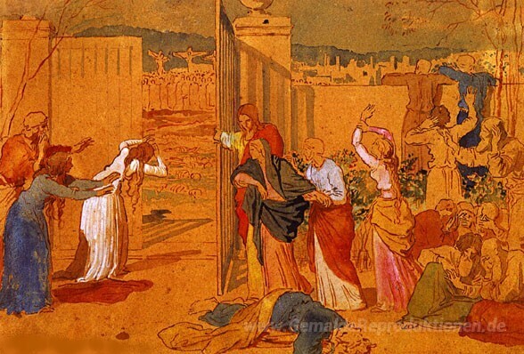 Wir bieten Ihnen eine handgefertigte Reproduktion auf Leinwand des berühmten Kunstwerks 'Die Jungfrau, die Jünger Christi und die Frauen, folgte ihm und ' von Alexander Ivanov, aus dem Reproduktionsmuseum.