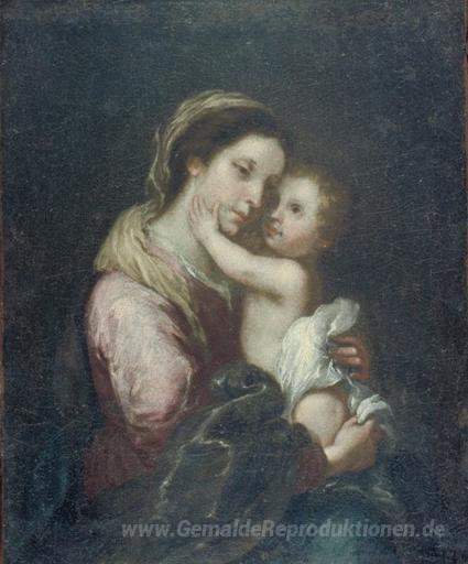 Wir bieten Ihnen eine handgefertigte Reproduktion auf Leinwand des berühmten Kunstwerks 'Die Jungfrau und das Kind Jesus' von Bartolome Esteban Murillo, aus dem Reproduktionsmuseum.