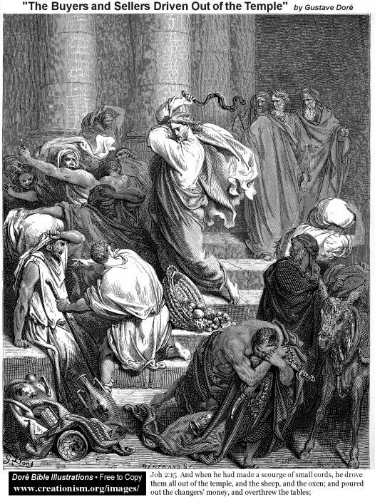 Wir bieten Ihnen eine handgefertigte Reproduktion auf Leinwand des berühmten Kunstwerks 'Die Käufer und Verkäufer Out Of Temple Driven' von Gustave Dore, aus dem Reproduktionsmuseum.