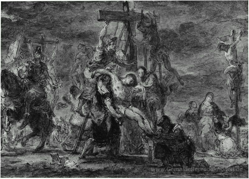 Wir bieten Ihnen eine handgefertigte Reproduktion auf Leinwand des berühmten Kunstwerks 'Die Kreuzabnahme' von Eugene Delacroix, aus dem Reproduktionsmuseum.