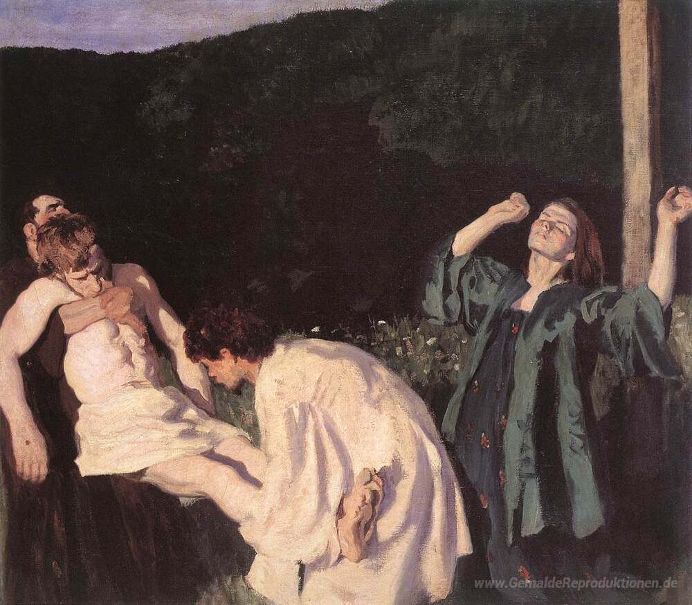 Wir bieten Ihnen eine handgefertigte Reproduktion auf Leinwand des berühmten Kunstwerks 'Die Kreuzabnahme' von Karoly Ferenczy, aus dem Reproduktionsmuseum.