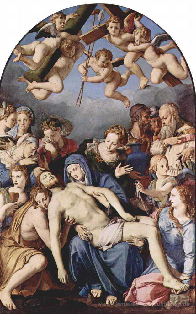 Wir bieten Ihnen eine handgefertigte Reproduktion auf Leinwand des berühmten Kunstwerks 'Die Kreuzabnahme' von Agnolo Bronzino, aus dem Reproduktionsmuseum.