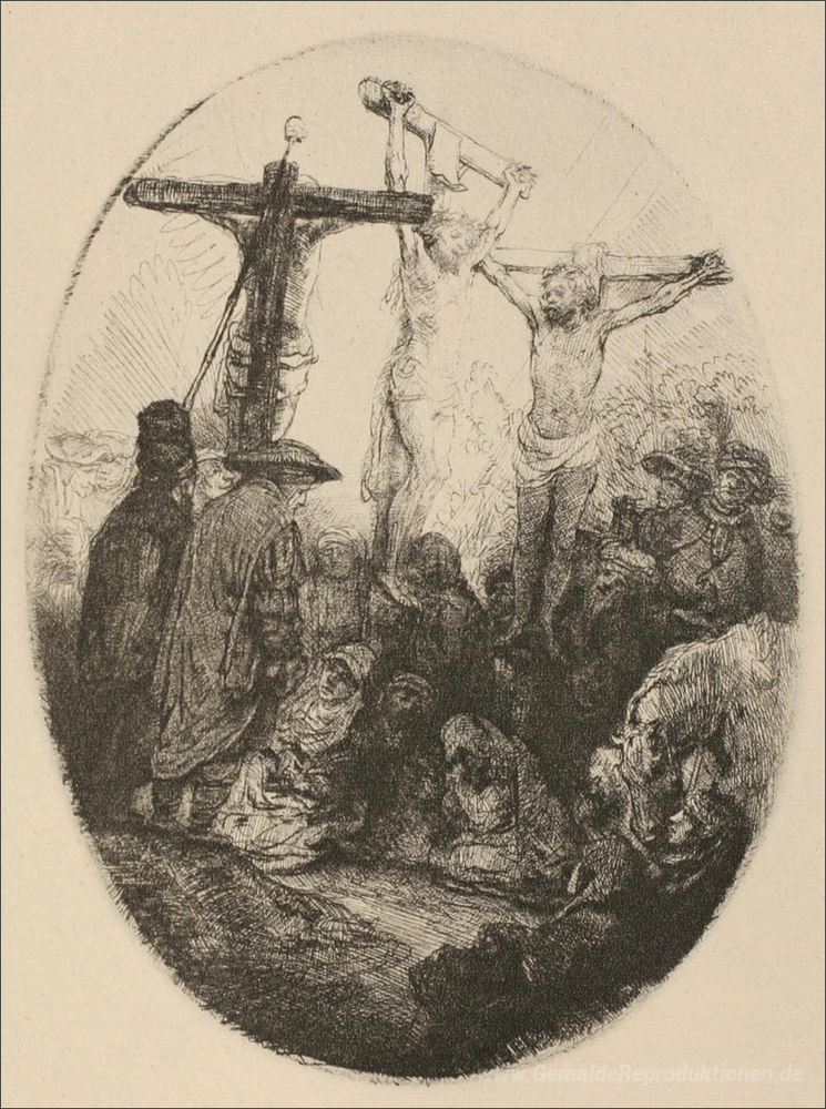 Wir bieten Ihnen eine handgefertigte Reproduktion auf Leinwand des berühmten Kunstwerks 'Die Kreuzigung eine ovale Platte' von Rembrandt, aus dem Reproduktionsmuseum.