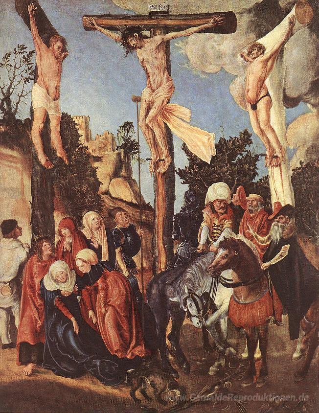 Wir bieten Ihnen eine handgefertigte Reproduktion auf Leinwand des berühmten Kunstwerks 'Die Kreuzigung' von Lucas Cranach the Elder, aus dem Reproduktionsmuseum.