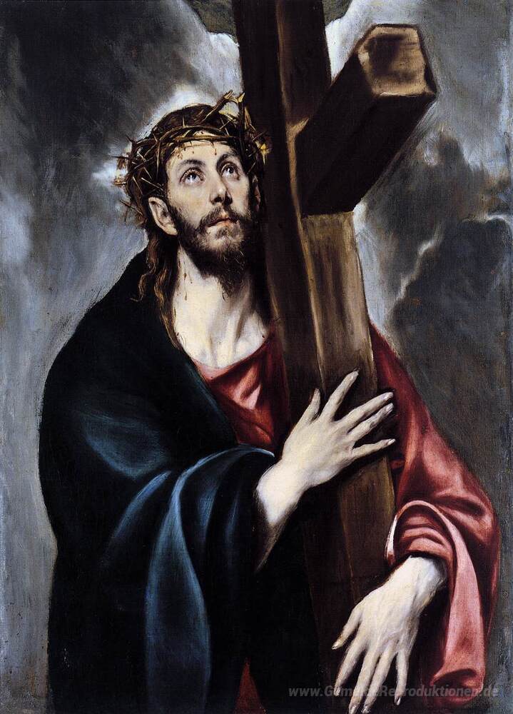 Wir bieten Ihnen eine handgefertigte Reproduktion auf Leinwand des berühmten Kunstwerks 'Die Kreuztragung Christi' von El Greco, aus dem Reproduktionsmuseum.