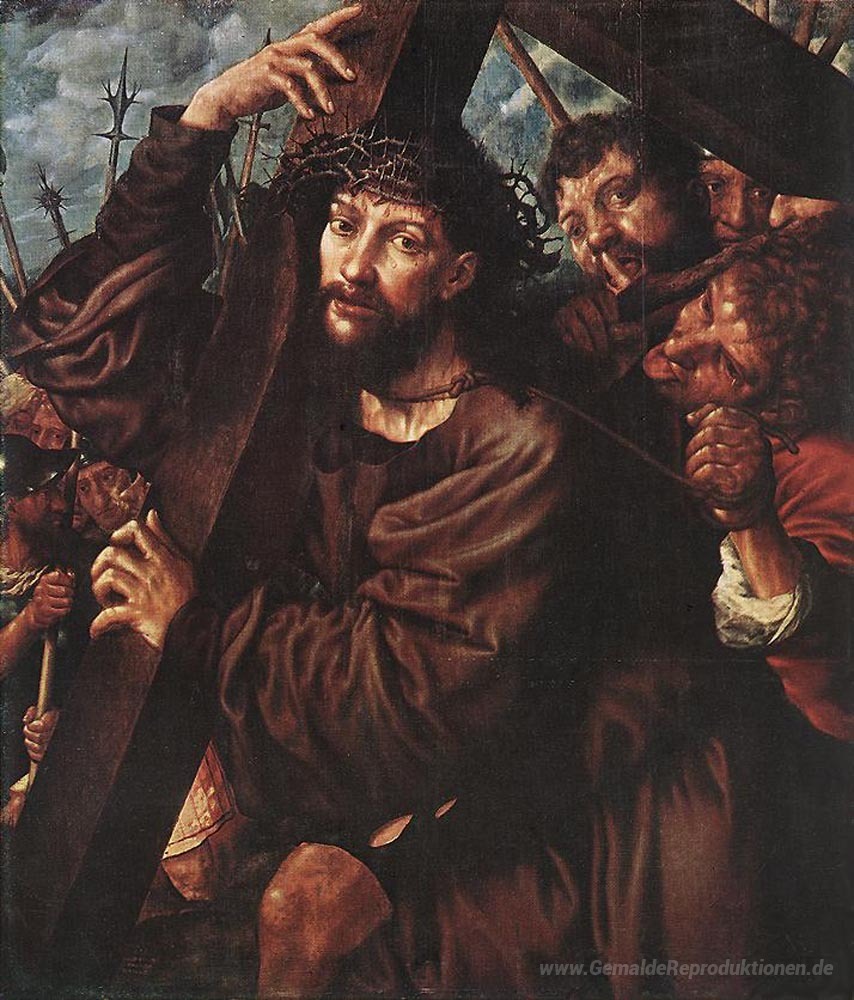 Wir bieten Ihnen eine handgefertigte Reproduktion auf Leinwand des berühmten Kunstwerks 'Die Kreuztragung Christi' von Jan van Hemessen, aus dem Reproduktionsmuseum.