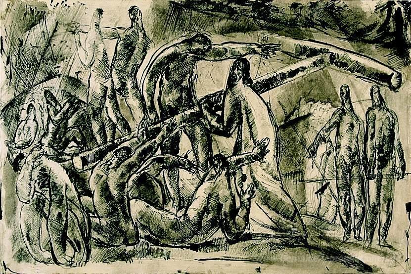 Wir bieten Ihnen eine handgefertigte Reproduktion auf Leinwand des berühmten Kunstwerks 'Die Kreuztragung' von Vilmos Aba-Novak, aus dem Reproduktionsmuseum.