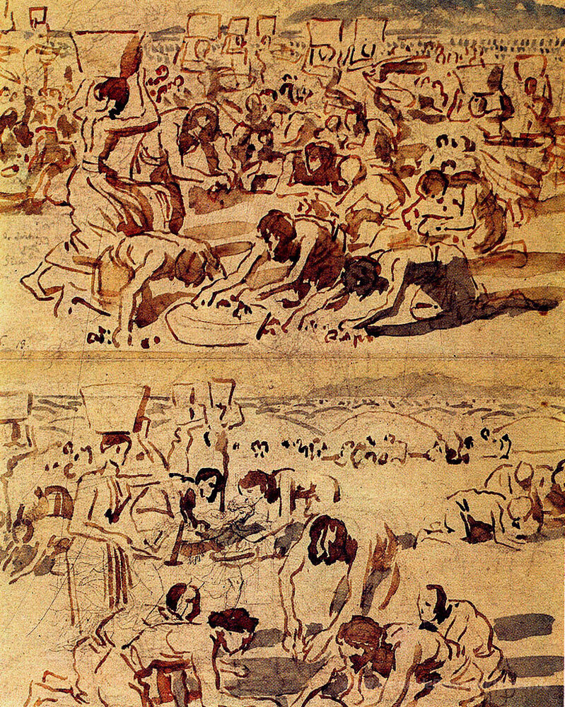 Wir bieten Ihnen eine handgefertigte Reproduktion auf Leinwand des berühmten Kunstwerks 'Die Menschen versammeln sich Manna' von Alexander Ivanov, aus dem Reproduktionsmuseum.