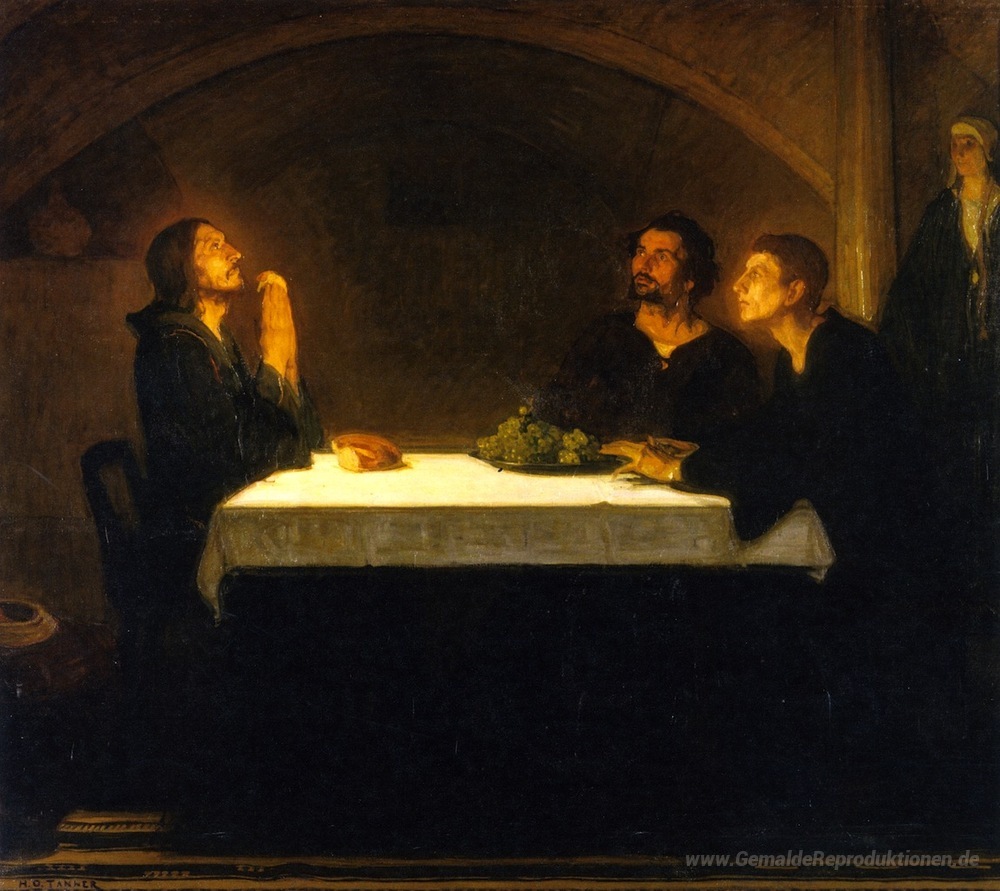 Wir bieten Ihnen eine handgefertigte Reproduktion auf Leinwand des berühmten Kunstwerks 'Die Pilger von Emmaus' von Henry Ossawa Tanner, aus dem Reproduktionsmuseum.