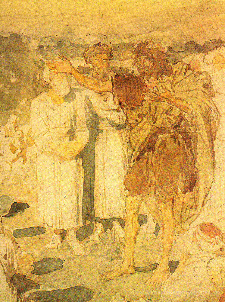 Wir bieten Ihnen eine handgefertigte Reproduktion auf Leinwand des berühmten Kunstwerks 'Die Predigt des Heiligen Johannes des Täufers' von Alexander Ivanov, aus dem Reproduktionsmuseum.