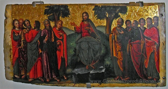 Wir bieten Ihnen eine handgefertigte Reproduktion auf Leinwand des berühmten Kunstwerks 'Die Predigt des Heiligen Johannes des Täufers' von Ivan Rutkovych, aus dem Reproduktionsmuseum.