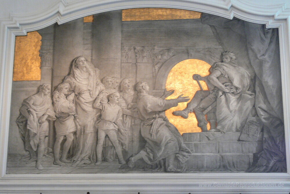 Wir bieten Ihnen eine handgefertigte Reproduktion auf Leinwand des berühmten Kunstwerks 'Die sieben Makkabäer Brüder zum Tode durch Antiochus IV verurtei' von Giovanni Domenico Tiepolo, aus dem Reproduktionsmuseum.