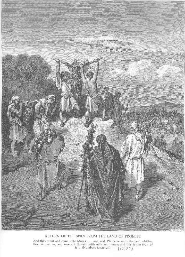 Wir bieten Ihnen eine handgefertigte Reproduktion auf Leinwand des berühmten Kunstwerks 'Die Spies Rückkehr aus dem gelobten Land' von Gustave Dore, aus dem Reproduktionsmuseum.