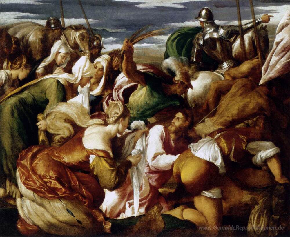 Wir bieten Ihnen eine handgefertigte Reproduktion auf Leinwand des berühmten Kunstwerks 'Die Straße zum Kalvarienberg' von Jacopo Bassano, aus dem Reproduktionsmuseum.