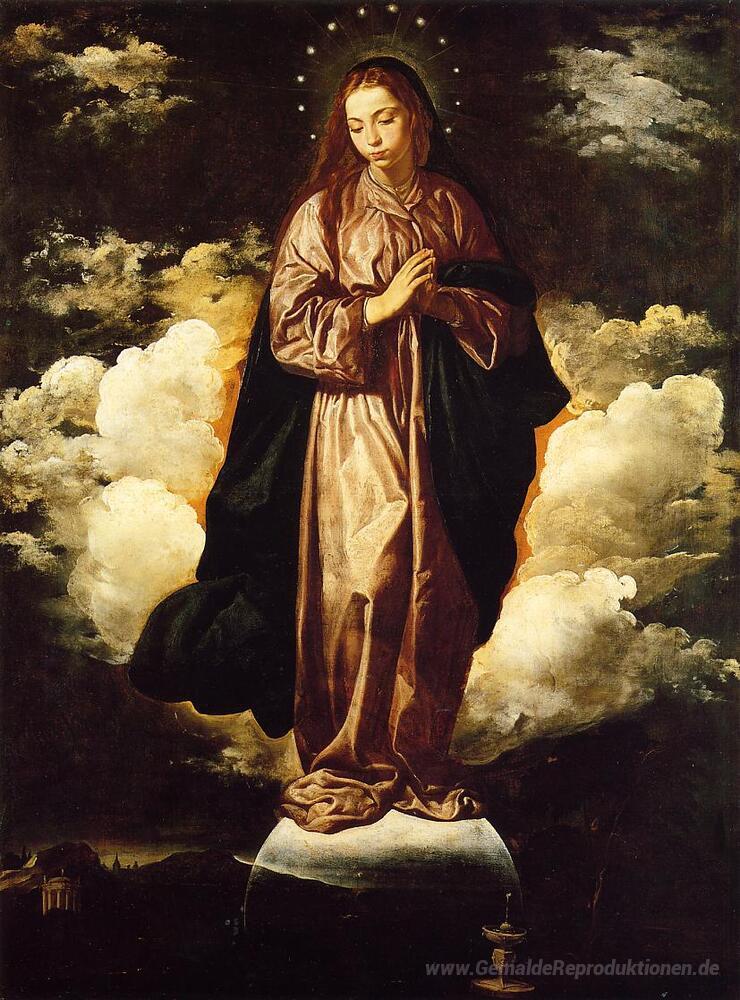 Wir bieten Ihnen eine handgefertigte Reproduktion auf Leinwand des berühmten Kunstwerks 'Die Unbefleckte Empfängnis' von Diego Velazquez, aus dem Reproduktionsmuseum.