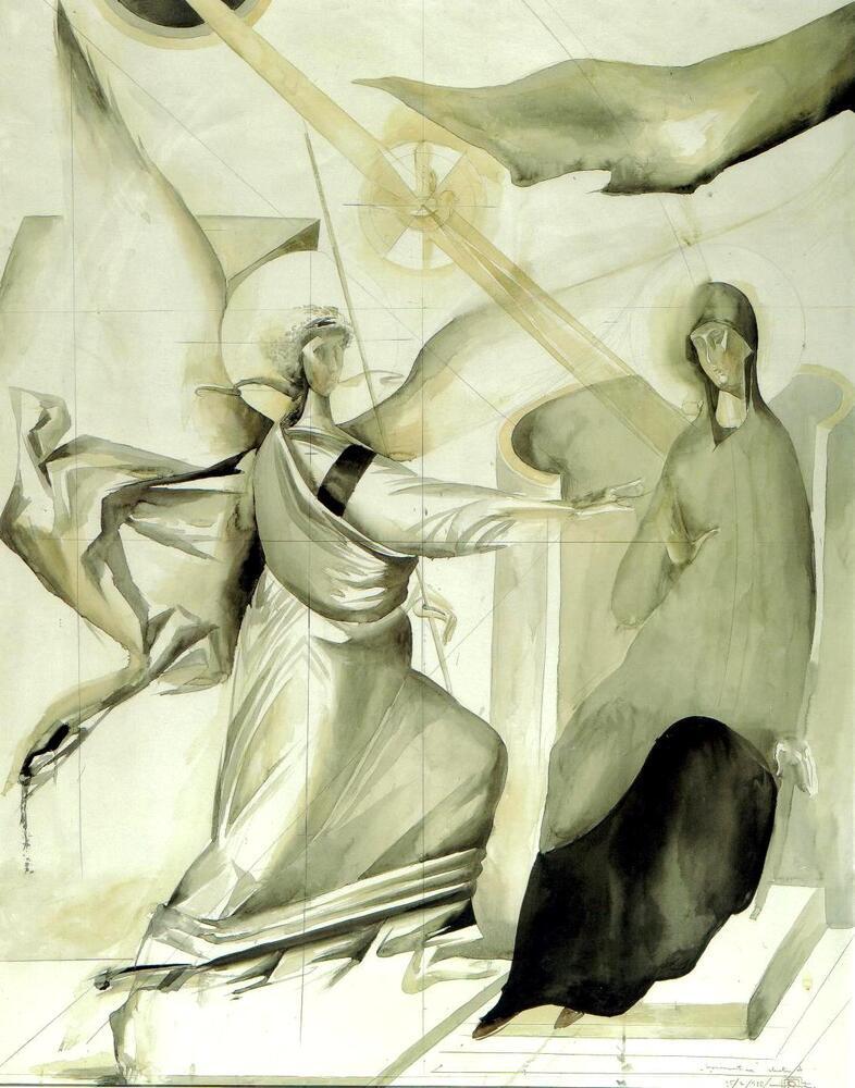 Wir bieten Ihnen eine handgefertigte Reproduktion auf Leinwand des berühmten Kunstwerks 'Die Verkündigung (Studie 1)' von Sorin Dumitrescu, aus dem Reproduktionsmuseum.