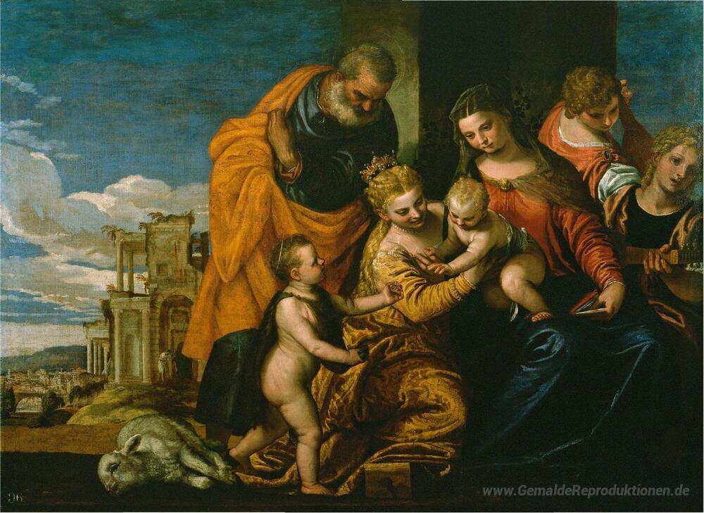 Wir bieten Ihnen eine handgefertigte Reproduktion auf Leinwand des berühmten Kunstwerks 'Die Vermählung der Heiligen Katharina' von Paolo Veronese, aus dem Reproduktionsmuseum.
