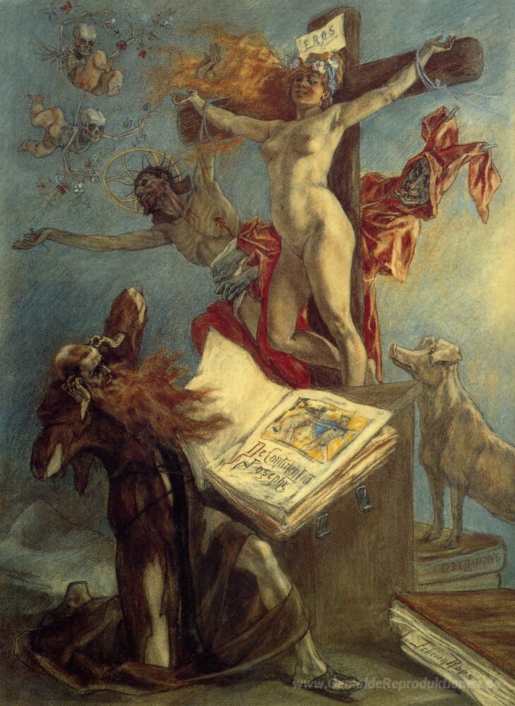 Wir bieten Ihnen eine handgefertigte Reproduktion auf Leinwand des berühmten Kunstwerks 'Die Versuchung des heiligen Antonius' von Felicien Rops, aus dem Reproduktionsmuseum.