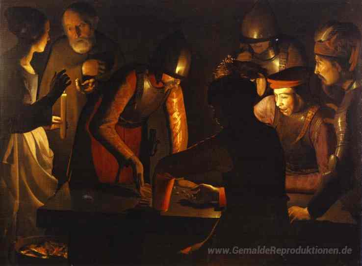 Wir bieten Ihnen eine handgefertigte Reproduktion auf Leinwand des berühmten Kunstwerks 'Die Verweigerung von St. Peter' von Georges de la Tour, aus dem Reproduktionsmuseum.