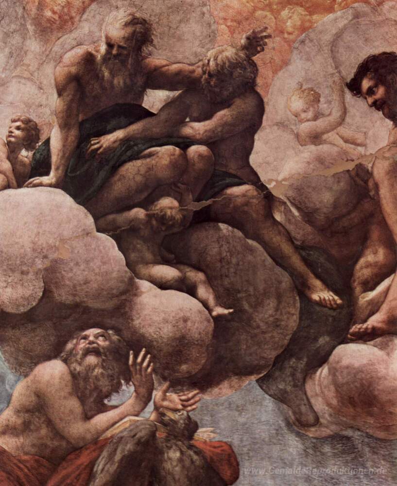 Wir bieten Ihnen eine handgefertigte Reproduktion auf Leinwand des berühmten Kunstwerks 'Die Vision von Johannes in Patmos' von Correggio, aus dem Reproduktionsmuseum.