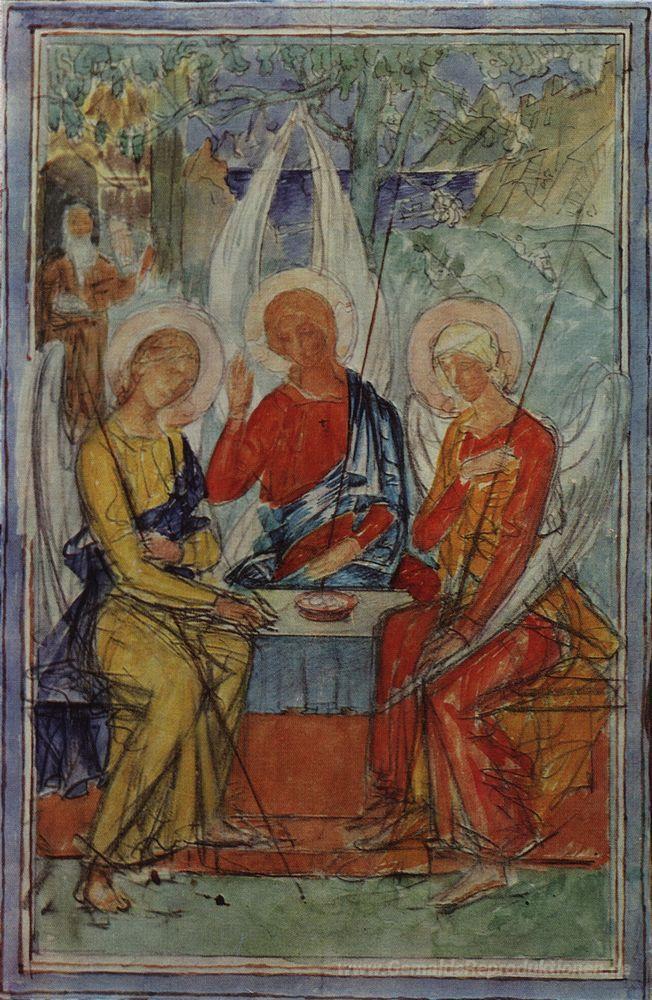 Wir bieten Ihnen eine handgefertigte Reproduktion auf Leinwand des berühmten Kunstwerks 'Dreieinigkeit' von Kuzma Petrov-Vodkin, aus dem Reproduktionsmuseum.