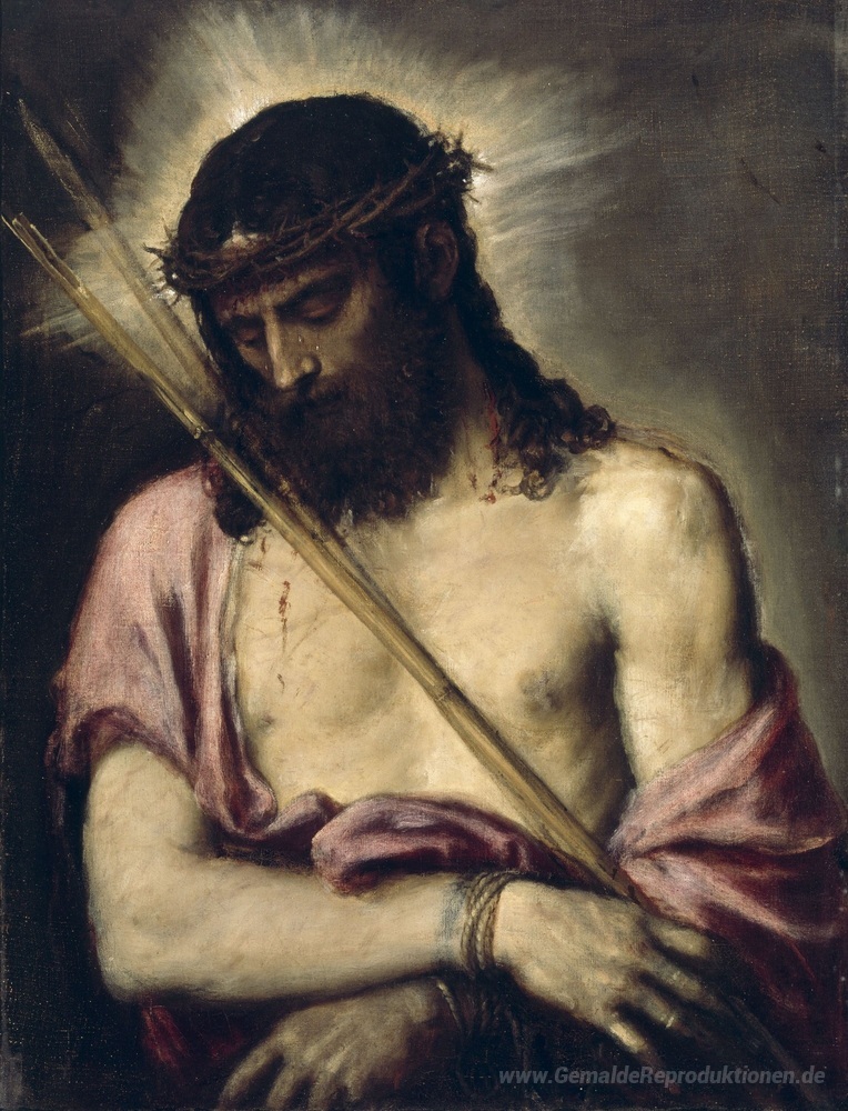 Wir bieten Ihnen eine handgefertigte Reproduktion auf Leinwand des berühmten Kunstwerks 'Ecce Homo' von Titian, aus dem Reproduktionsmuseum.