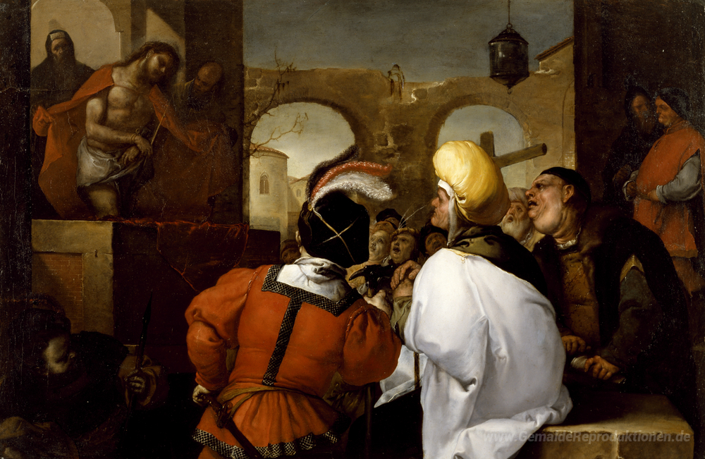 Wir bieten Ihnen eine handgefertigte Reproduktion auf Leinwand des berühmten Kunstwerks 'Ecce Homo' von Luca Giordano, aus dem Reproduktionsmuseum.
