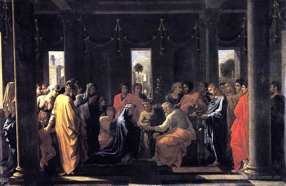 Wir bieten Ihnen eine handgefertigte Reproduktion auf Leinwand des berühmten Kunstwerks 'Ehe' von Nicolas Poussin, aus dem Reproduktionsmuseum.