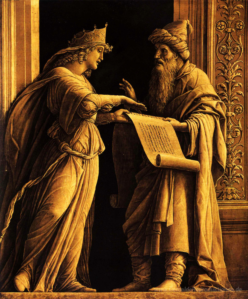 Wir bieten Ihnen eine handgefertigte Reproduktion auf Leinwand des berühmten Kunstwerks 'Ein Sibylle und ein Prophet' von Andrea Mantegna, aus dem Reproduktionsmuseum.