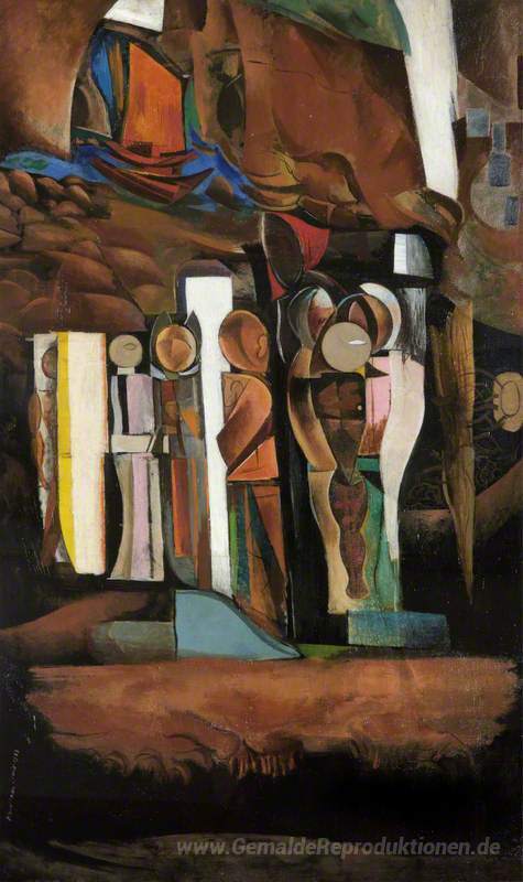 Willkommen in unserer exquisiten Sammlung von Ölgemälden, die kunstvolle Eleganz in Ihr Zuhause bringen. Eines der herausragendsten Werke ist Eine der Stationen der Toten, geschaffen von dem visionären Künstler Wyndham Lewis. Als Mitbegründer der Vortizismus-Bewegung bringt Lewis in diesem Gemälde eine dynamische Verbindung von Form und Farbe zum Ausdruck, die den Betrachter in ihren Bann zieht.