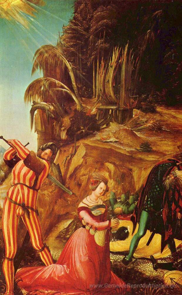 Wir bieten Ihnen eine handgefertigte Reproduktion auf Leinwand des berühmten Kunstwerks 'Enthauptung der heiligen Katharina' von Albrecht Altdorfer, aus dem Reproduktionsmuseum.