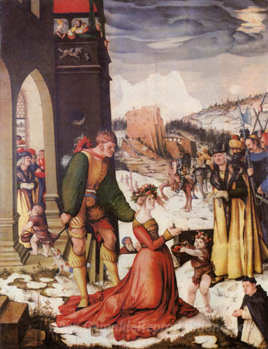 Wir bieten Ihnen eine handgefertigte Reproduktion auf Leinwand des berühmten Kunstwerks 'Enthauptung des Hl Dorothea' von Hans Baldung, aus dem Reproduktionsmuseum.