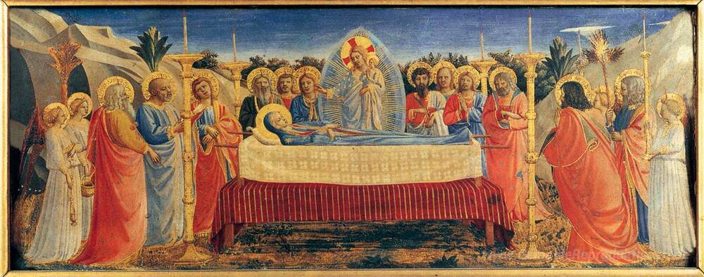 Wir bieten Ihnen eine handgefertigte Reproduktion auf Leinwand des berühmten Kunstwerks 'Entschlafen der Gottesmutter' von Fra Angelico, aus dem Reproduktionsmuseum.