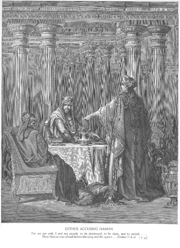 Wir bieten Ihnen eine handgefertigte Reproduktion auf Leinwand des berühmten Kunstwerks 'Esther beschuldigt Haman' von Gustave Dore, aus dem Reproduktionsmuseum.