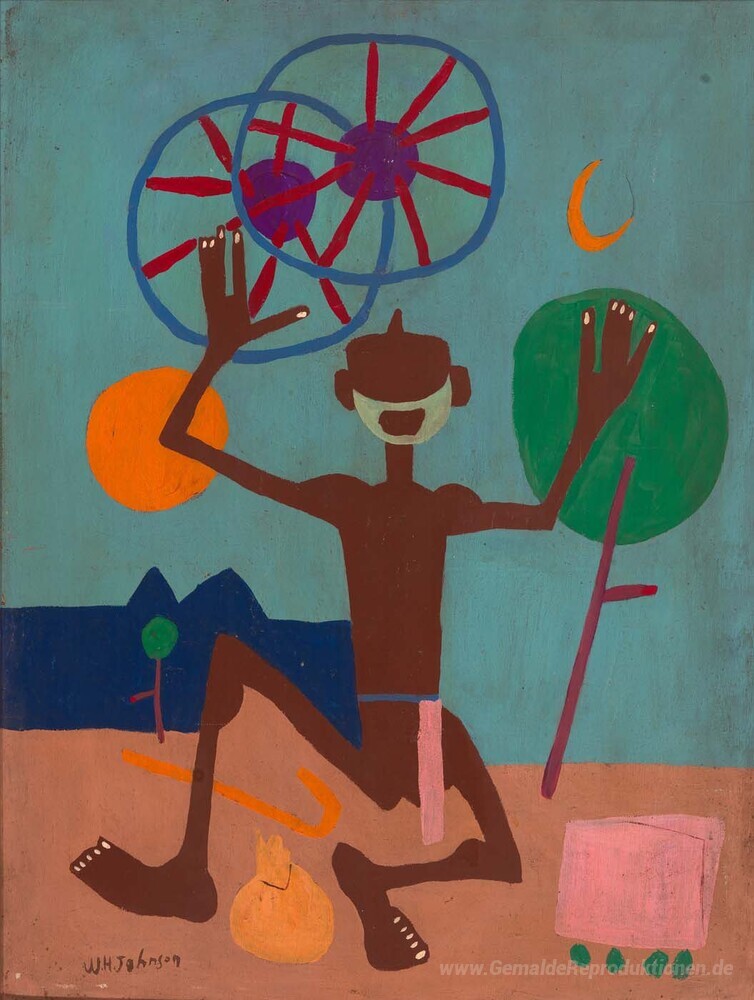 Willkommen in der faszinierenden Welt der Ölgemälde, wo jedes Kunstwerk eine einzigartige Geschichte erzählt. Unser Highlight, Ezekiel Saw das Rad von William H. Johnson, verkörpert den kreativen Geist des 20. Jahrhunderts und besticht durch kraftvolle Farben und dynamische Formen. Johnson, ein bedeutender Vertreter der afroamerikanischen Künstlerbewegung, nutzt seine Werke als Medium, um tiefe kulturelle und gesellschaftliche Themen zu beleuchten.