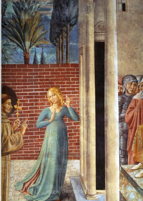 Wir bieten Ihnen eine handgefertigte Reproduktion auf Leinwand des berühmten Kunstwerks 'Feuerprobe vor dem Sultan (Detail)' von Benozzo Gozzoli, aus dem Reproduktionsmuseum.