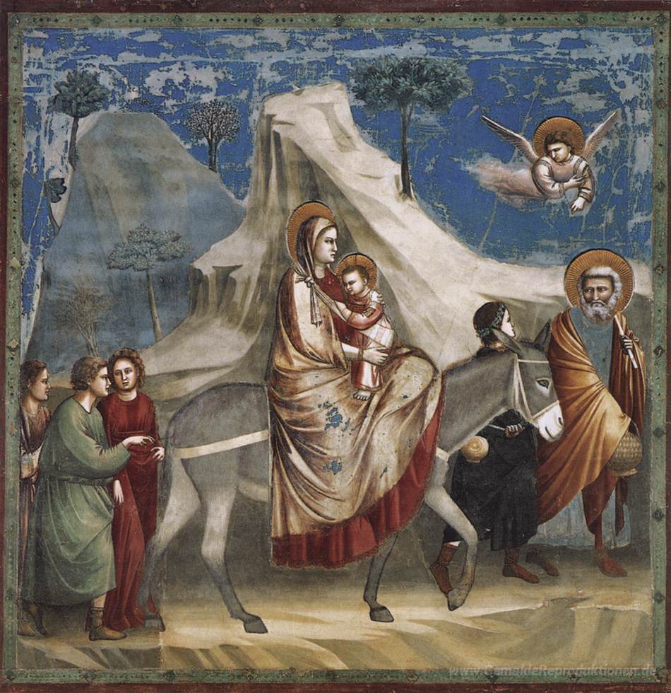 Wir bieten Ihnen eine handgefertigte Reproduktion auf Leinwand des berühmten Kunstwerks 'Flucht nach Ägypten' von Giotto, aus dem Reproduktionsmuseum.