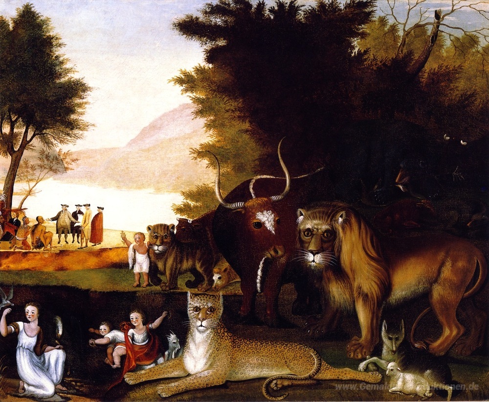 Entdecken Sie die faszinierende Welt der Ölgemälde, die nicht nur Kunstwerke, sondern auch unverwechselbare Elemente für Ihre Wohnräume sind. Unser Kunstportfolio umfasst Meisterwerke wie Friedliches Königreich, geschaffen von dem talentierten Künstler Edward Hicks. Hicks, ein Wegbereiter der amerikanischen Malerei, verbindet in seinen Arbeiten naive Stile mit tiefgründigen Botschaften über Harmonie und Frieden.