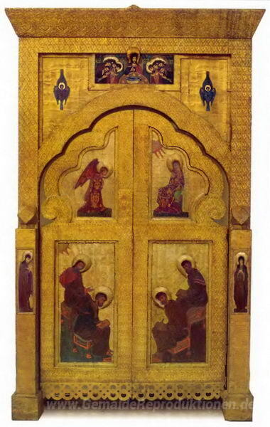 Wir bieten Ihnen eine handgefertigte Reproduktion auf Leinwand des berühmten Kunstwerks 'Gate des Königs mit der Gate-Baldachin' von Nicholas Roerich, aus dem Reproduktionsmuseum.